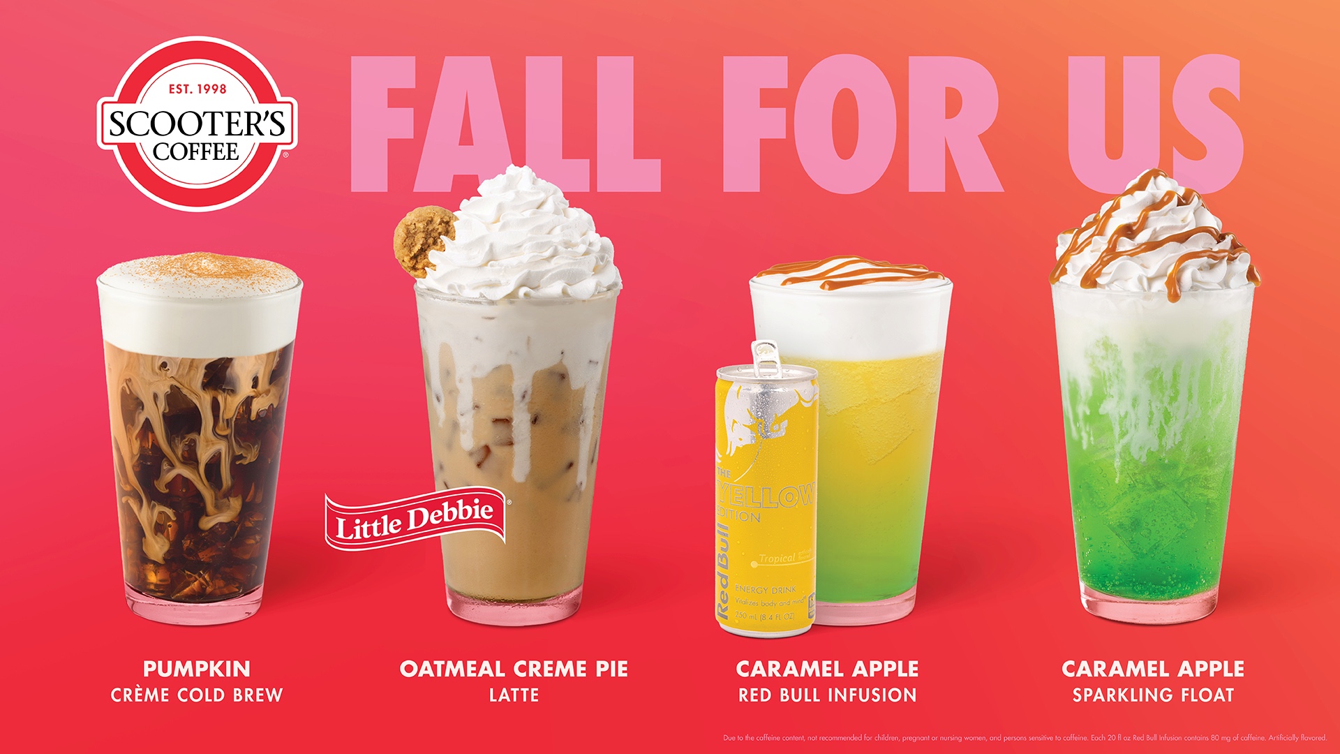 OMAHA, Neb., August 14, 2025 – Think cozy thoughts and drink cozy drinks with the launch of the new fall menu launching today at Scooter’s Coffee! The lineup features a new latte inspired by Little Debbie® snacks, the return of fall favorites featuring pumpkin and caramel apple flavors, the revival of a fan favorite muffin, and new sweet and savory food options.