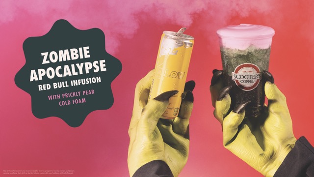 Unleash the undead with the hauntingly tasty new Zombie Apocalypse Red Bull Infusion at Scooter’s Coffee! But don’t wait: once the clock strikes midnight on Halloween, it’s back